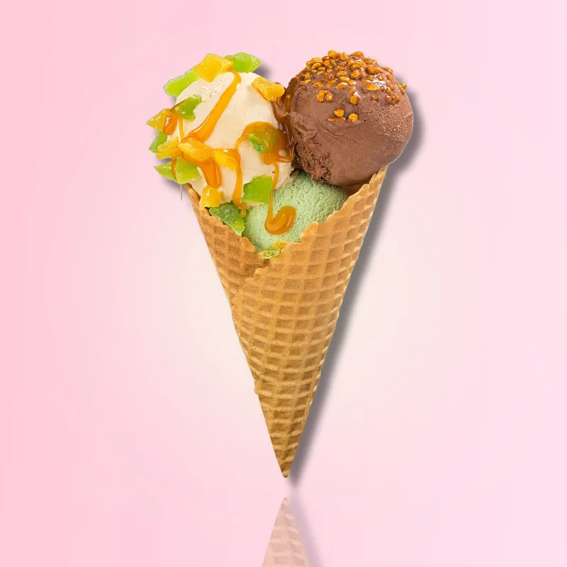 Puedes escoger un cono grande más helado ya sea simple o aliado 😮
