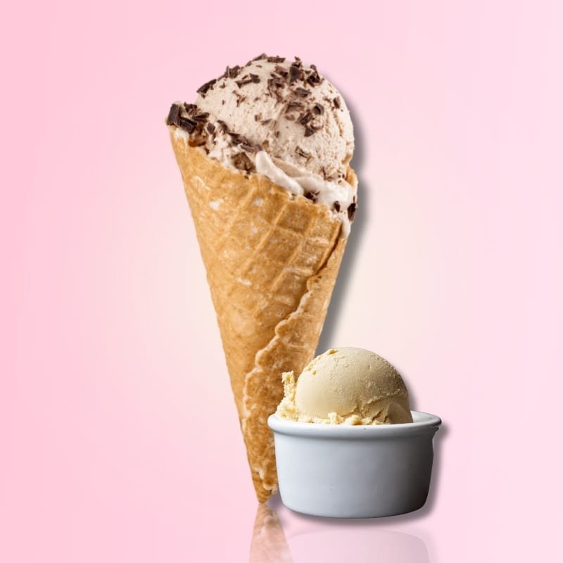 Puedes escoger cono o vaso más una bocha de 250gr